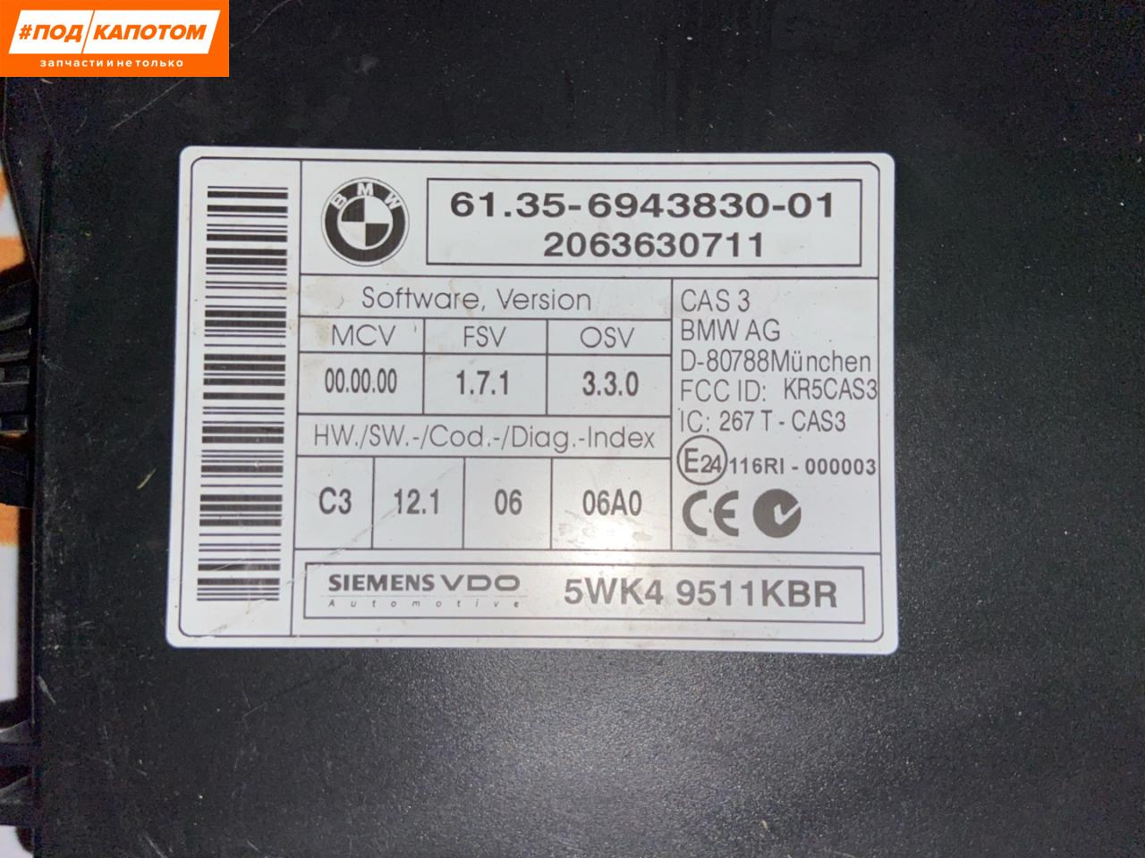 | Номер запчасти | 6943830, 61356943830 |