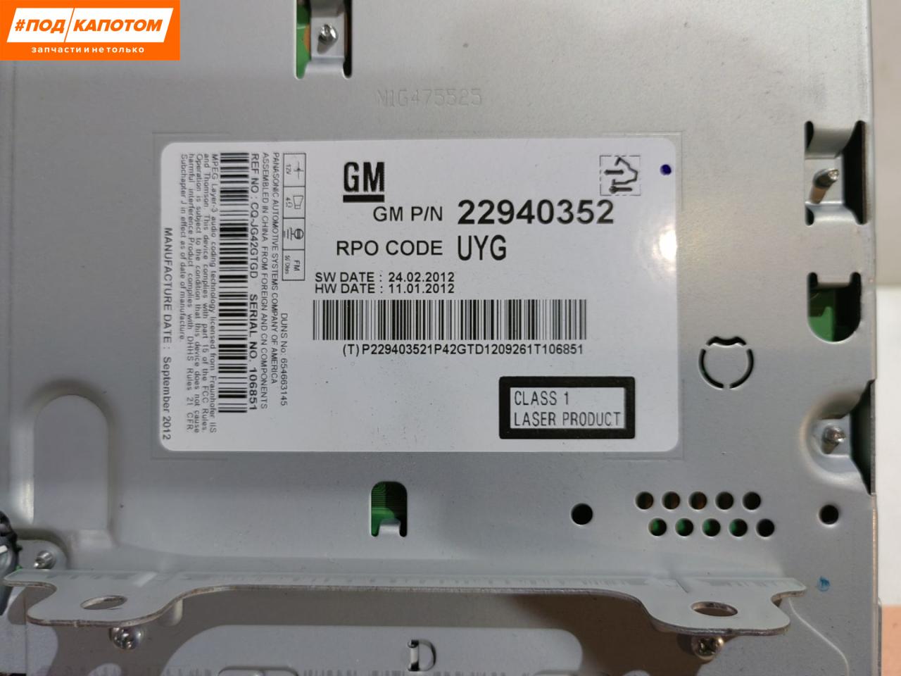 Магнитола Chevrolet Cruze 2012