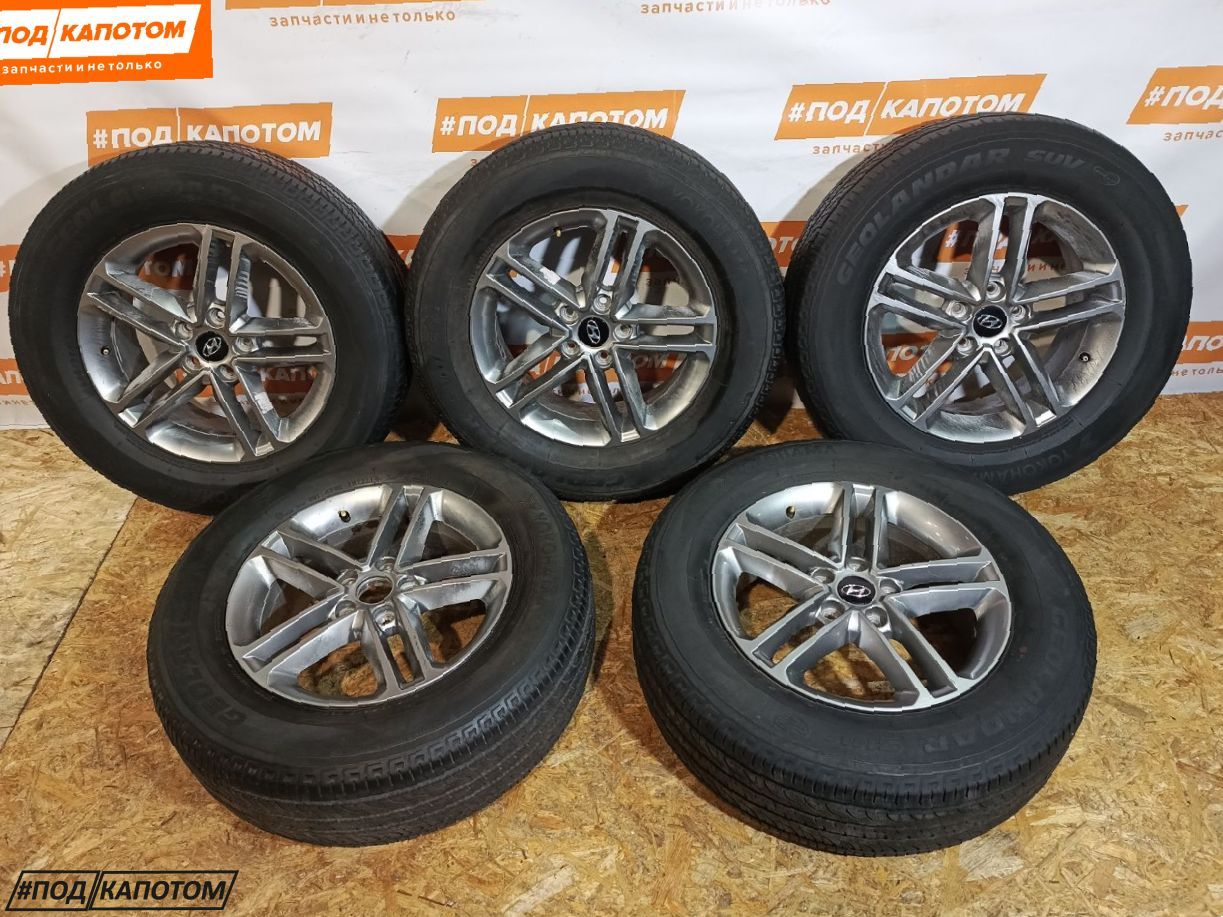 Комплект колес R17x7 5x114.3 (Yokohama Geolandar SUV G055 245/65) R17, ширина обода: 7, PCD 5x114.3 мм, DIA 67.1 мм, ET 47 мм. Шины: внедорожные, летние, 2014, остаточная высота: 5.8мм. Hyundai Santa Fe 3 рест. 2018