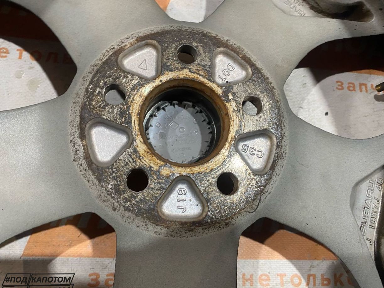 Колесо R18x7 5x100 (Kumho Solus KL21 255/55) R18, ширина обода: 7, PCD 5x100 мм, DIA 56.1 мм, ET 48 мм. Шины: легковые, летние, 2017, остаточная высота: 3мм. Subaru Exiga 2011